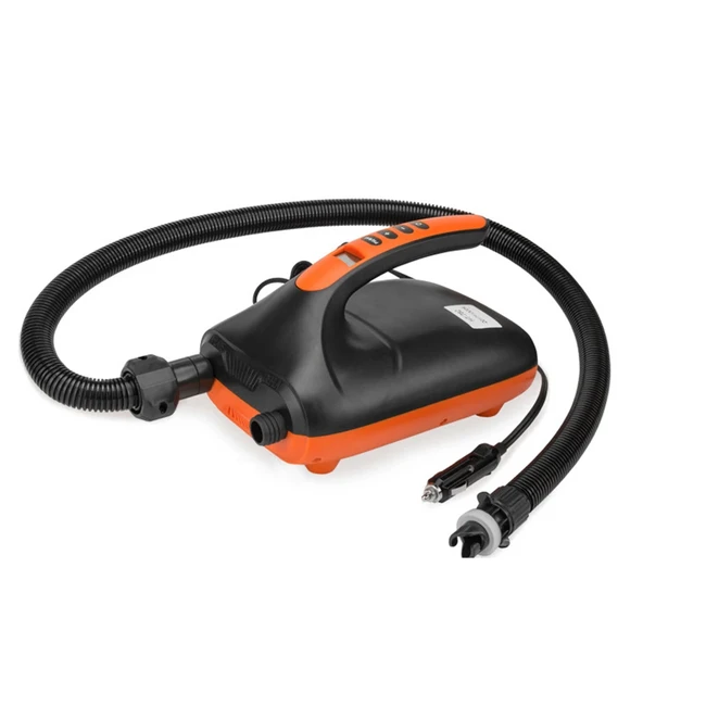 Met de Spinera 12 V High Pressure Pomp blaast u uw SUP board of opblaasbare kano gemakkelijk op! Deze pomp sluit u nameliojk eenvoudig aan op de 12 V sigaretten aansluiting in uw auto. Op het LCD beeldscherm stelt u de gewenste druk in en leest u de druk af. De pomp stopt daarnaast automatisch als de gewenste druk is bereikt, hierdoor is overdruk niet mogelijk. De pomp beschikt tevens ook over een leegpomp functie.