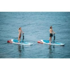 Het opblaasbare SUP board is met een lengte van 305 cm goed manoeuvreerbaar. Door zijn breedte van 105 cm is het board goed stabiel en belastbaar tot 180 kg. Met de meegeleverde pomp is de SUP binnen 15 minuten vaarklaar.