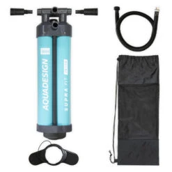 De Aqua Design High Pressure Supra Fit 2 handpomp beschikt over een innovatief luchtsysteem (2 x 1.8 L) en is daardoor twee keer zo snel als een klassieke dubbelwerkende pomp. De Supra Fit 2 is o.a. geschikt voor SUP’s en opblaasbare kajaks.