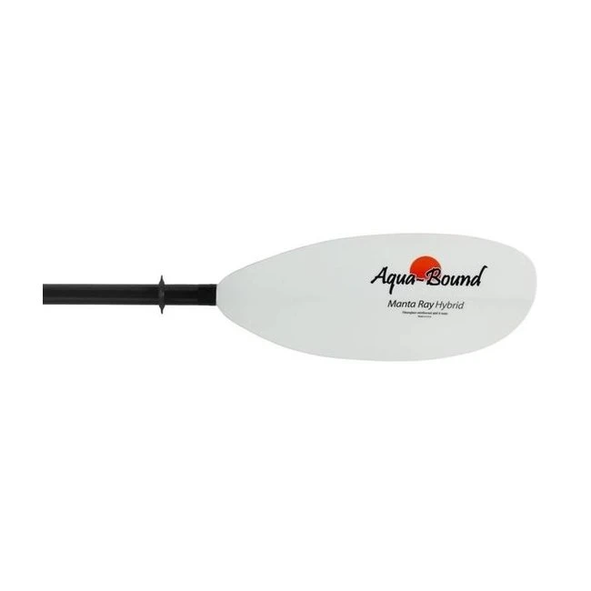 De Aqua Bound Manta Ray Hybrid is een stijve toerpeddel welke goed druk in het blad biedt. Deze peddel heeft namelijk iets grotere en bredere bladen in verhouding tot de Aqua Bound Sting Ray. Dit model heeft een carbon steel en nylon met fiberglass verstevigde bladen. Hierdoor is de Manta Ray Hybrid sterk, weegt slechts 900 gram en is deze geschikt voor lange (meerdaagse) tochten. Deze versie is tweedelig en uitgerust met Posi-Lock. Door dit deelsysteem kan u de peddel met een druk op de knop in tweeën delen, in elke gewenste hoek zetten en eenvoudig in elkaar klikken.