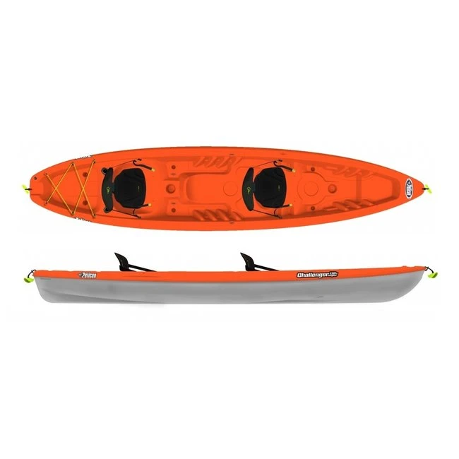 De Pelican Challenger Tandem is een toegankelijke tweepersoons sit-on-top kajak welke geschikt is voor alle Nederlandse wateren. Dit model is over de lengte iets vlakker waardoor dit model goed door het water snijd. Hierdoor is de Challenger het meest geschikt voor tochten op vlakwater. Doordat deze ook voorzien is van zelflozende gaten is het ook mogelijk om groter water op te zoeken. Indien er door golfslag water in de kajak komt loopt dit namelijk snel weg. Aan de achterzijde is er elastiek bevestigd waar een waterdichte ton/tas onder meegenomen kan worden. De stoelen zijn voorzien van foam en verstelbaar in hoek. Hierdoor zit u altijd naar wens. Ook is er plek om een bidon of thermoskan bij de hand te houden in een van de bekerhouders.