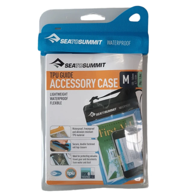De Sea To Summit TPU Guide Accessorry Case is een compleet waterdichte tasje voor het bewaren van uw telefoon, pasjes, geld en andere belangrijke spullen. Dit tasje beschermt uw spullen tegen water en stof. Dit model beschikt over een betrouwbare sluiting en is UV bestendig. Het touchscreen van uw telefoon is te bedienen terwijl hij in deze tas zit!