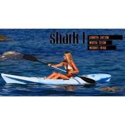 De Shark 1 is een sit-on-top kajak welke zich goed leent voor recreatieve tochten op zowel binnen- als open water. Door zijn lengte van 347 cm loopt dit model in verhouding tot de kortere modellen iets sneller door het water. Grotere afstanden zijn dan ook makkelijker te overbruggen. Daarnaast beschikt de Shark over opstaande neuzen (rocker in de bodem). Met meer golfslag en deining zal de voorpunt dan ook niet duiken maar netjes door glijden. Dit model wordt geleverd met een luxe verstelbare rugsteun en zelflozende gaten.